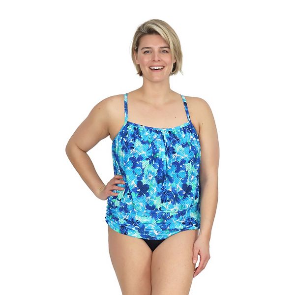 Plus Size A Shore Fit Athletic Hip Minimizer Blouson Swim Top